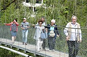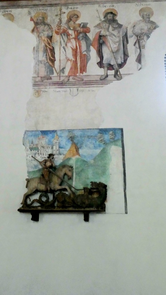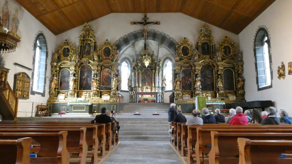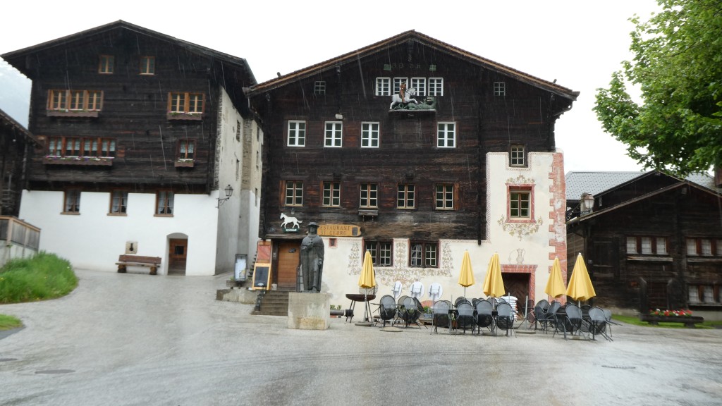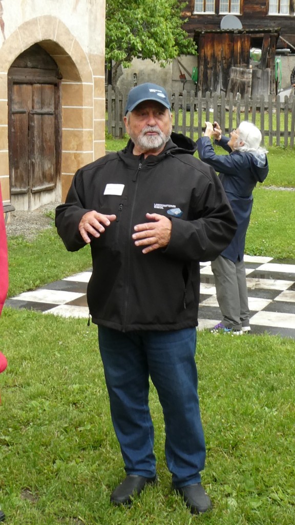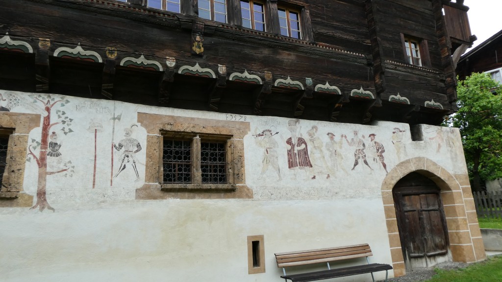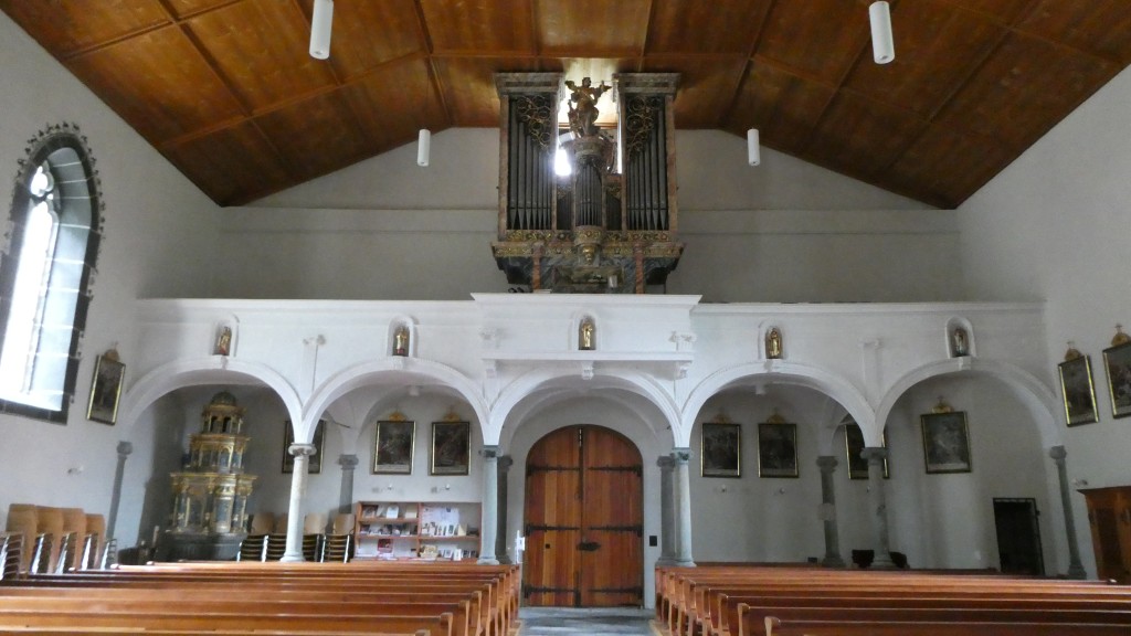 ; Notre visite a débuté par la traversée de la vallée par le « Goms Bridge ». Avec ses 280 mètres, il est un des plus longs ponts suspendus du Valais. Il enjambe la gorge de la Lama et le Rhône à 92 m de hauteur et relie les villages de Fürgangen et Mühlebach. Autrefois chef-lieu de la vallée de Conches, Ernen a profité de son emplacement comme plaque tournante du transport pendant des siècles. La construction d'une ligne routière et ferroviaire moderne de l'autre côté de la vallée du Rhône met la ville à l'écart en termes de trafic et entraîne un déclin économique. Ernen est un des villages les plus intéressants du Valais pour ses nombreuses maisons du 15ème 17ème et du 18ème siècle. Avec nos 2 guides, nous avons eu l'occasion de visiter un peu de la richesse passée de la commune. Des bâtiments remarquables comme l'église paroissiale Saint-Georges construite en 1510-18 par Ulrich Ruffiner à la place d'une église à trois absides du 11ème siècle, la Tellenhaus (1578) (administration communale) qui abrite les plus anciennes fresques telliennes de Suisse, la Kapuzinerhaus (1511), l'école (1538), la Maison Sigristen-Jost (1580) transformée en musée.
